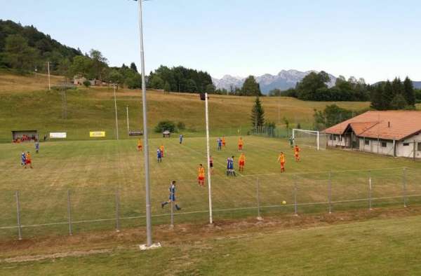 68′ Buona manovra per i viola del Comelico, palla al giovane Nicola Cesco che calcia alto sopra la traversa.