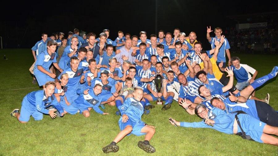 Al microfono Burba, autore di una tripletta, e gli allenatori Chiementin e Moser
