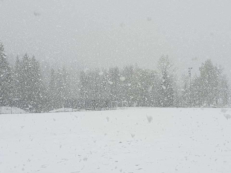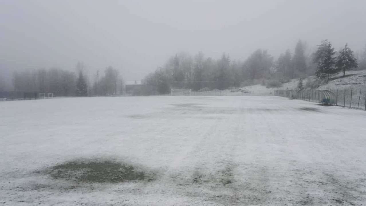 L’annunciata neve è arrivata, imbiancando anche alcuni campi dove oggi alle 16.30 sono in programma le partite della prima giornata del Campionato Carnico.
